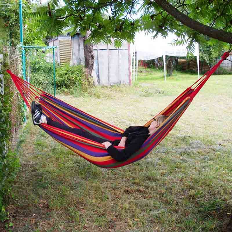 Wystarczy oba końce przywiązać do stabilnej powierzchni – haków, słupków czy drzew. Doskonały do zawieszenia na tarasie. Nawet, jeśli nie masz domu z ogrodem, nadal możesz się cieszyć wygodnym odpoczynkiem na hamaku – wystarczy że zawiesisz go na balkonie lub nawet podwiesisz w pokoju.